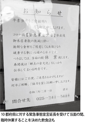実際のところ駅前の居酒屋の中には、1都3県に緊急事態宣言が出されたのを受けて、緊急事態宣言が解除される前日の2月7日まで臨時休業することにした店もありますよ」(新潟駅前の別の飲食店関係者)