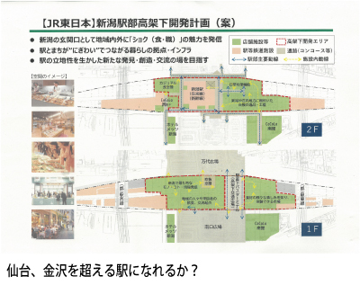前市長の時代から、公式の場での発言は初かもしれない。中原八一市長がJR新潟駅の新しい駅舎に入る商業施設について言及した。その後、建設業界紙が「高架下の開発着手へ」と伝えた。生まれ変わる同駅の周辺では、オフィスビルの建て替え、30階建てマンションの計画も進んでいる。