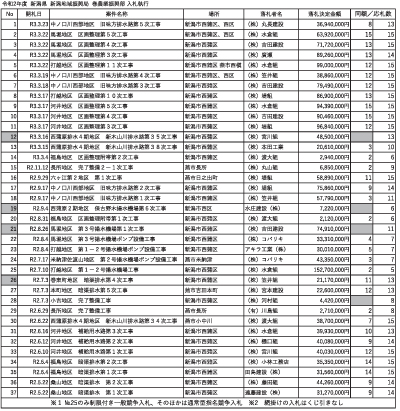 前置きはともかく、別表は令和2(2020)年度、県巻農業振興部(巻農地)の入札結果(工事)を示したもの。同年度で37件の入札が行われ、このうち33件、89%余、およそ9割はくじ引きで落札者が決められた。37件は1件を除き通常型指名競争入札だった。