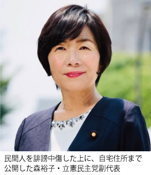 森裕子参院議員(立憲民主党副代表)が善良な民間人を誹謗中傷した上に、この人物の自宅住所を自身のホームページなどで公開するという国会議員にあるまじき暴挙に出たのは一昨年11月。しかしマスコミを見渡してもこの問題を熱心に報じ続けているのは産経新聞だけとあって、大多数の国民は森議員による人権侵害の酷い実態を知る由もない。