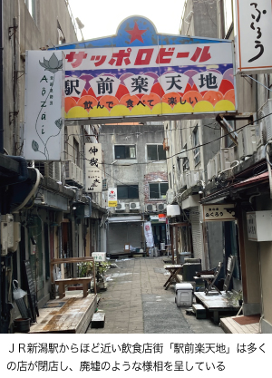 新潟市内の繁華街を歩いてみると一目瞭然だが、今回の時短要請下では古町界隈で約7割の飲食店が休業、JR新潟駅前にいたっては8割以上の飲食店が休業を選択した。
