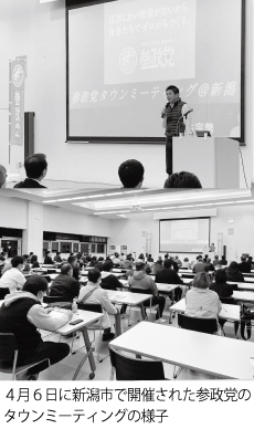 4月6日、県内では初の開催となる参政党のタウンミーティングが開催された。この日は同党で共同代表を務める松田学氏や、ボードメンバー(役員)で事務局長を務める神谷宗幣氏が来県。会場となった新潟市中央区の新潟ユニゾンプラザには、予想を越える100人ほどが集まった。
