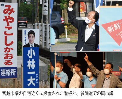 一方の宮越市議は旧大蔵省主計局で主査などを歴任した官僚だった。退官後は渡辺美智雄(故人、大蔵、通産、農水、外務など大臣を歴任)の秘書を務め、中選挙区時代の旧衆院4区から3回出馬したが、いずれも落選。