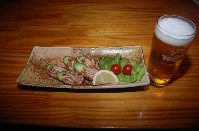 「来店謝恩メニュー」として、キリン一番絞り生ビール330mlが150円(何杯飲んでも!)、ほたて串揚げ、にんにく揚げ、なめこおろし、しらすおろしなど100円! 他にも、500円以下のメニューが盛りだくさん。 しかも夕方4時から翌朝10時まで営業しているというからありがたい。ちなみに年中無休、オープンして6年間、一日も店を閉めたことがない。