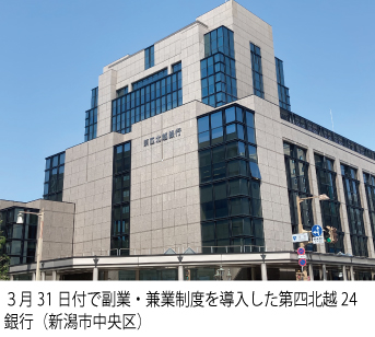 こうした時代の流れに県内企業の中でいち早く乗ったのが第四北越銀行だ。同行は今年3月31日、同日付で従業員の副業や兼業を認める「副業兼業制度」を導入したと発表した。