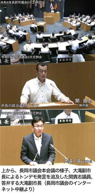 長岡市議会3月定例会での爆弾発言で、大滝靖副市長によるトンデモ発言が暴露された。市議に向かい「(予算案に)反対するなら市長は応援しない」と、ほとんど脅しまがいのセリフを吐いたという。この件だが、副市長は本誌に対しダンマリをとおした。だが6月議会の一般質問で答弁せざるを得なくなった。その中身だが、「はて…?」と首を傾げたくなったり、「言ってないなら謝らなきゃいいじゃん」と言いたくなるものだった。