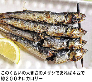 「ご飯がお茶碗1杯150㌘だとすると230㌔㌍。小さめのメザシが1匹当たり36㌔㌍だとして、4匹で144㌔㌍。味噌汁の具は不明ですが、わかめと豆腐だとすると44㌔㌍くらいでしょうか。そうすると1食当たりの摂取カロリーは計418㌔㌍となります」 (新潟市の管理栄養士)