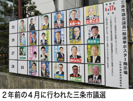 余談はさて置き、朝ドラとまではいかなくても、注目されるべき存在が三条市議会だ。前回の市議選は2年前の4月だった。直前まで無投票とささやかれていたが、「無投票阻止」を掲げ、新人が立候補。一転して定数22に1人超過の23人で争う選挙戦に突入した。