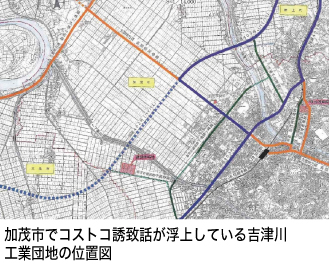 その間隙をついてか、加茂市でも進出話が浮上していた。出店が期待されている土地は、同市でも三条市との境界付近にある市の吉津川工業団地だ。かつて同市の小池清彦前市長が救命救急センター(現県央基幹病院)を誘致しようとした土地で、造成済みながらまったく活用されていない。同市への誘致話については、以前アバウトな中身を本誌で紹介した。