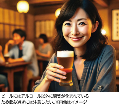 〈お酒好きな人のお腹がぽっこりと出ていると「ビール腹」なんてよく言いますが、実はビールそのもので太るということはありません。