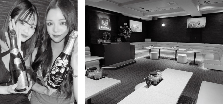 大勢の美女たちが一堂に会する光景は、まさに非日常を思わせる贅沢なものだ。ボックス席7卓を擁する広いフロアだからこそなせる業といえるだろう。