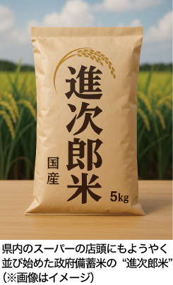 6月上旬、県内の一部スーパーでも政府備蓄米が並び始めた。開店前の朝早い時間から安価な備蓄米を目当てに長蛇の列ができたのはマスコミ報道のとおりだが、ある主婦は「ようやく5㌔2000円台のお米を買うことができました」と笑顔を見せた。果たして“令和のコメ騒動”の顛末やいかに。