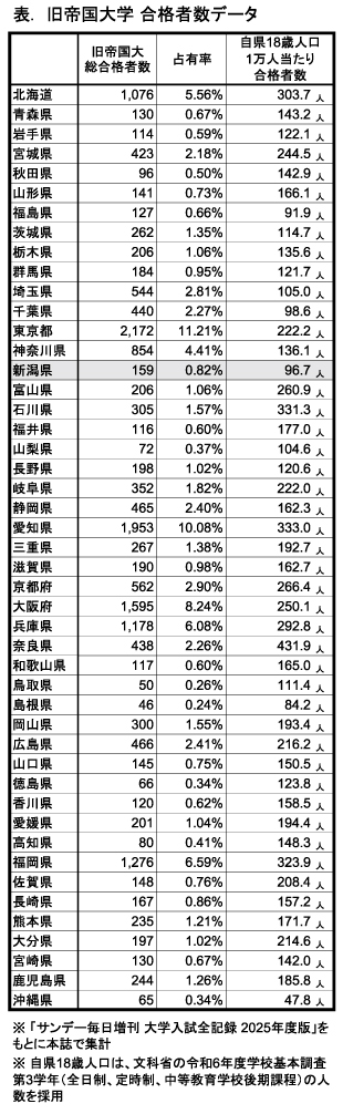 なぜ、あえて最難関の大学を目指すのか。より良い学習環境を求めて。視野を広げるために。優秀な仲間と切磋琢磨するために。自らを試し、未来を切り拓く力を身につけるため、などの理由もあるだろう。その先に待つのは、年収や就職の優位性、社会的な信用、そして日本社会を支えるリーダーとしての道かもしれない。では、そんな可能性を秘めた若者たちを、新潟県はどれほど育み、どれほど送り出しているのか。