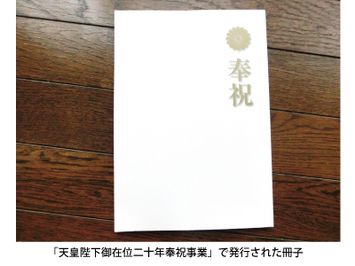 日本会議新潟県本部では平成21年に天皇陛下御即位20年を記念して記念奉祝事業を企画し、そのフロントとして「新潟県奉祝委員会」を立ち上げた。会長は現新潟商議所会頭の敦井栄一氏(北陸ガス社長)、名誉会長に泉田裕彦知事、代表委員にはNSGグループのトップ池田弘氏ら新潟を代表する政財界人が名前を連ねている。