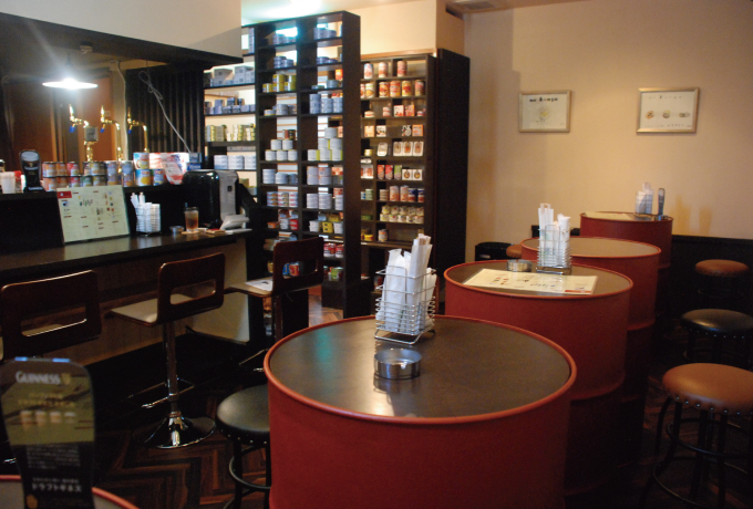 お店のシステムは、入ってすぐ出迎えてくれるズラリと並んだ缶詰の棚から好みの缶詰をチョイス、これを店員に渡し、ドリンクを注文。キャッシュオン(現金でその都度清算)と簡潔なシステムだ。