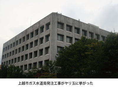 上越市議会12月定例会の一般質問がきっかけとなり〝官製〞さえも疑われるガス水道局発注工事に、ついにメスが入る。本誌記者は、その以前から潜伏取材に着手。今回露わになった実態以上の〝状況証拠〞も入手に至った。