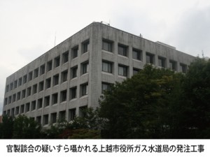 上越市議会12月定例会における共産党の橋爪法一市議の一般質問から派生し、平成18年度から同23年度の間に行われた上越市ガス水道局発注工事(Aランク指定)で、談合が行われた疑いが浮上した。現在はまだ調査段階だけに敢えて〝浮上した〟と書いたが、ここまで挙がっている〝証拠〟の信憑性から、談合の実態は限りなく100%に近い確率で存在したと言える。