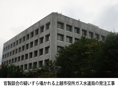 上越市市役所ガス水道局発注の入札工事で“官製”の可能性すらも疑われる談合の実態が明らかになったことは、前号記事で報じた。地元建設業界は戦慄する。そこにはかつて市内113の業者が排除勧告を受け、その後の入札状況に大きな変化を及ぼした“新潟市官製談合”の悪夢がよみがえるからであろう。