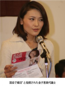 2年前、国政出馬を決めた直後に、金子の母が自嘲気味にこんなことを話していた。そんなこともあって、今回の記事のタイトルには意外性を感じた。5月14日発売の週刊新潮に掲載された「だから『国会で婚活』と嗤われる金子恵美代議士の熱海一泊勉強会デート」である。