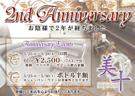 新潟市古町の“宝石箱”と名高い人気クラブ美十(びじゅう)が、この5月にオープン2周年を迎える。