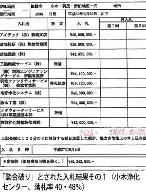 入札が行われたのは6月4日、市内にある浄化センターの運転維持管理業務に関る指名競争入札だった(一部、別表)。…続きは本誌にて