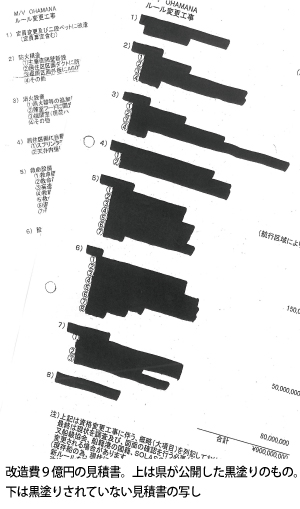 その額は船の値段をはるかに超える9億円だ。契約したことも、改造費で9億円の見積書が出ていることも、昨年10月の段階で県議会にはまったく明らかにされていない。