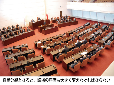 ここまで来れば本気なのかもしれない。県議会自民党会派の分裂だ。過去に兆候がなかったわけではない。衆院5区の候補者選考をめぐり、対立関係は誰の目にも明らかだった。いっそのこと会派を割り、互いに切磋琢磨する方が、議会の発展に貢献するかもしれない。