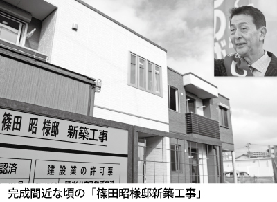 位置は不動産業者が言うとおり、市長宅の裏手に当たる。車2台がすれ違うことができない道路のどん詰まりに、その新築物件があった。そこには「篠田昭様邸 新築工事」とある看板が掲げられていた。そして「建築基準法による確認済み証」に、建築主は〈篠田 昭 様〉、施工者は〈積水ハウス〉と記入してあった。