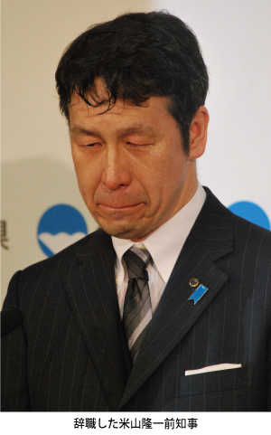 「先般週刊誌によって報道されました女性問題によって、多くの県民の皆様に失望と政治に対する不信の念を抱かせ、県政を混乱させてしまいました政治的、道義的責任をとって…」