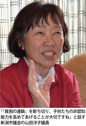 そう話すのは新潟市議会の山田洋子議員だ。山田議員ら同市議団は先ごろ、こども未来部長をはじめとする行政当局担当者らと大阪府箕面市を視察。同市における子供の貧困対策の先進性に深く感心したという。