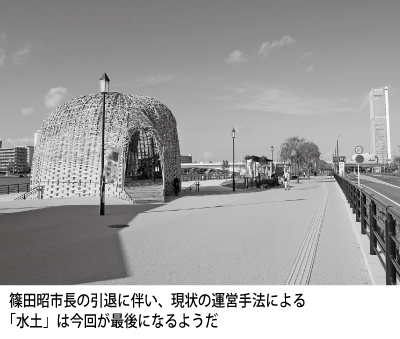 「水と土の芸術祭」は篠田昭市長ご自慢のプロジェクトだ。現在開催中で、今年が4回目になる。これまで回を重ねてきたが、未だ評価は真っ二つに分かれる。「アートを身近に感じることができる絶好の機会」と歓迎する声もある。一方、「意味不明の作品が並び、税金の無駄遣い」といった指摘もある。