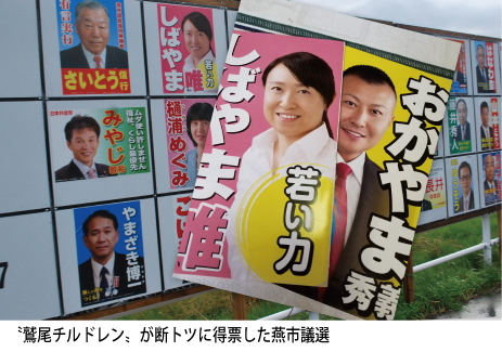 断トツの4千票超えを含む、いずれも上位当選の3人は、地元で「鷲尾チルドレン」と呼ばれている。〝チルドレン〟ら3人は、改選後の市議会で「チームつばめ」なる会派を結成した。3人の平均年齢は44歳で、ほかに比較して圧倒的に若い。