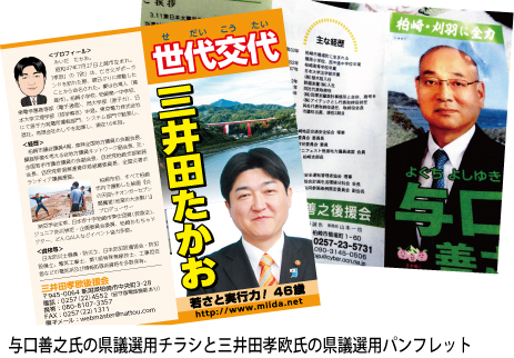 そうした良識ある声に押されるかのように、与口市議と同じ保守系会派に所属する三井田孝欧・柏崎市議(4期)が、そぞろ立候補の動きを開始したとの情報が流れた。三井田氏は党柏崎支部の総務会長で、県連青年局組織委員長である。