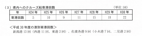 「クルーズ船の県内港への寄港は近年増加傾向にあり、平成30年は過去最多、22回のご寄港をいただいたところです」