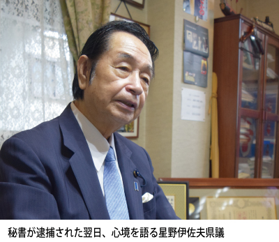 星野伊佐夫県議が取材に応じたのは、事件が発覚した翌日の1月19日朝だった。衝撃が未だ冷めやらず、事件に関する詳細もはっきりしない段階。同県議にはその2日前の同月17日朝、金内省治秘書か