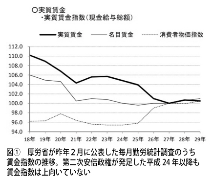 統計不正前から賃金上がらず