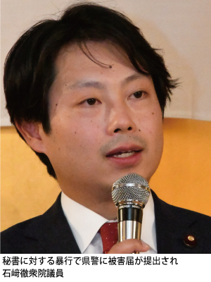 パワハラの被害者だが、採用されて、1、2年、地元に勤務する石﨑議員の男性秘書(30代)。仕事上のミスをあげつらわれ、「バカ」、「死ね」などと暴言を投げつけられたり、果ては車の中で同議員から殴られたりした。この秘書は我慢ならず、6月に県警に被害届を提出。その後も石﨑事務所で勤務を続けたが、7月に入って、仕事上のミスから同議員に足を蹴られ、これが引き金になって辞めたのだという。
